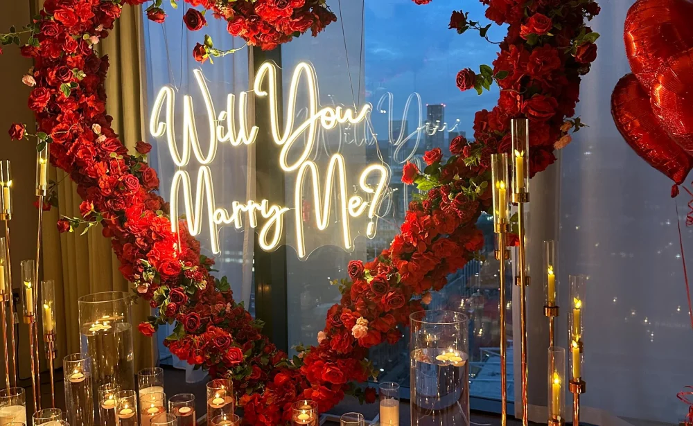 With an eye for luxury aesthetics and flawless ambience, we create stylish scenes using premium floral arrangements, romantic lighting, statement backdrops and personalised touches that make your proposal unique. Every set-up is designed to photograph beautifully, ensuring you have memories worth framing.